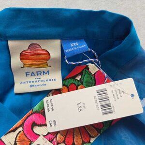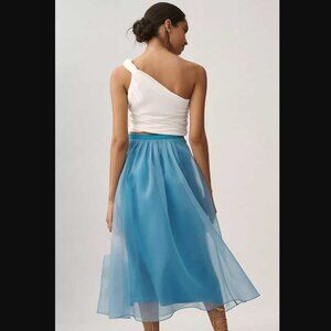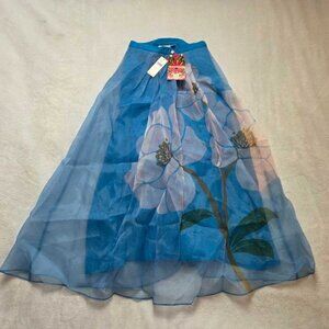 New XXS Farm Rio x Anthropologie Floral organza midi skirt in Blue Peony