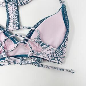 - XS Pink Blue Tribal Print Halter Bikini Top Strappy