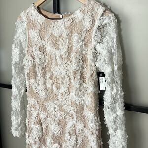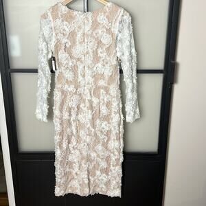 New Xscape Long Sleeve Soutache Embroidered Floral Lace Midi Sheath Dress Sz 8