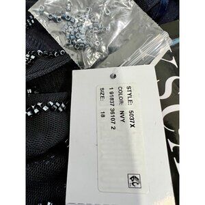 New Xscape Size 18 Beaded Short Sleeve Chiffon Sheath Dress Navy *Thread Pulls*