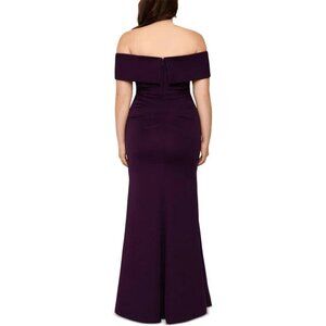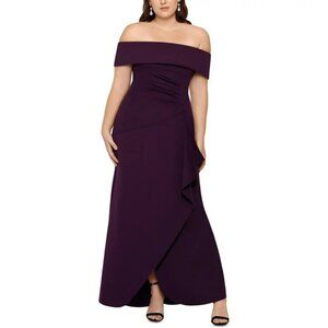 New Xscape Womens Burgundy Off Shoulder Asymmetrical Hem Gown Dress Size 18W
