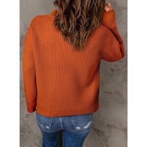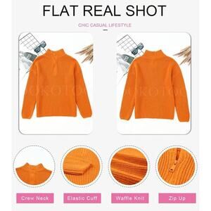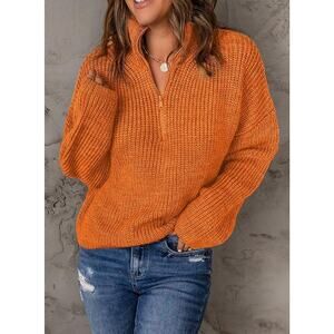 New Extra Large Long Sleeve 1/4 Zip Pullover Polo V Neck Dressy Casual Sweater - Fall Orange