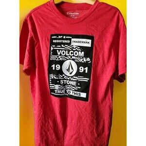 The New Y2K Volcom Stone Surf T-Shirt in XL features a solid red color with a classic crew neck design. Made from a comfortable cotton blend knit fabric, this pullover shirt is perfect for casual occasions, workwear, and even parties. With a retro 90s vibe and a nod to outdoor and California themes, this T-shirt is a versatile addition to any wardrobe. Machine washable for easy care, this shirt is ideal for all seasons and can be styled for winter, summer, fall, and spring alike.