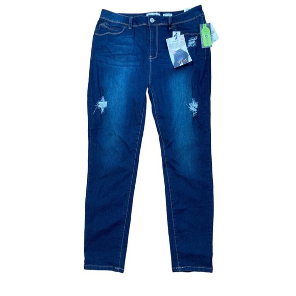 New YMI Curvy Fit High Rise Skinny Leg Jeans Plus 19/34 Distressed Dark Wash NWT