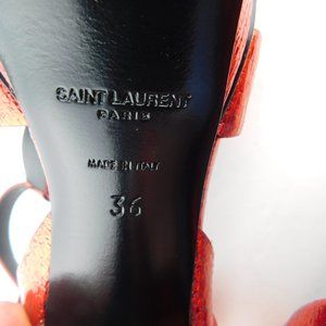 New YSL SAINT LAURENT Red Metallic Shimmer Leather T-Strap Heel Sandals 36
