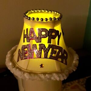 Looking for a unique New Year's Ever hat/tiara/fascinator? This is it! Each unique hat I create has a standard group of features; Happy New Year on the front with party hats, tiny cocktails, fireworks and bling! The hat itself is a small lampshade on a flexible tiara band w/bobby pins. The light comes from a battery operated tea light. I created my first hat 7 years ago and every year I am asked Where did you buy that? I want one! This hat is one you will receive compliments on for years to come.