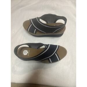 New Yellow Box Airlee Wedge Blue & White Comfort Sandal Women’s Size 7.5 M