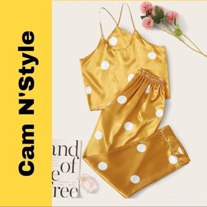 Brand new yellow polka dot satin PJ set (comes with top and pants)