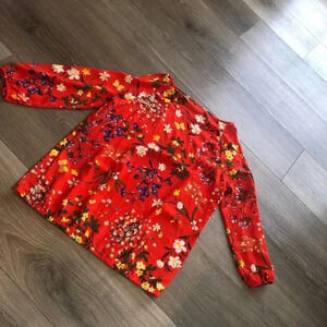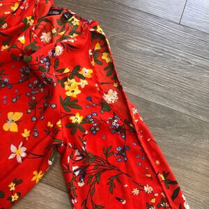 New York And Company Cold Shoulder Top Red Floral Lightweight Womens Size Small