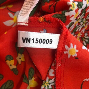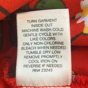 This New York & Company top is perfect for any occasion. The red floral pattern adds a colorful touch to your wardrobe. The 3/4 cold shoulder sleeve and round neckline give it a chic and sophisticated look. It's made of lightweight and breathable polyester material, making it perfect for all seasons. The pullover closure and easy care make it convenient and comfortable to wear. This blouse is ideal for travel, school, party/cocktail, casual, workwear, and business. Available in size Small, it's a regular fit and machine washable.