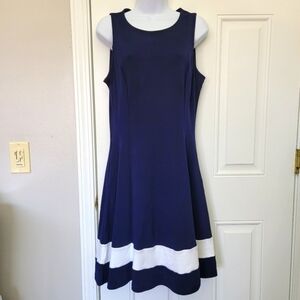 New York And Company Navy Sleeveless Dress White Stripe Nautical Medium