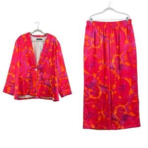 New York And Company New Watercolor Blazer Wide Leg Pants Suit XXL Colorful