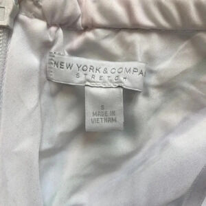 This beautiful halter dress from New York & Company is perfect for any occasion. The pastel rainbow striped pattern adds a fun and vibrant touch to the dress, while the fit and flare style creates a flattering silhouette. The dress features a backless design, collarless neckline, and a zip closure for easy wear.