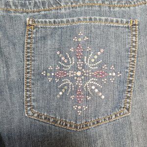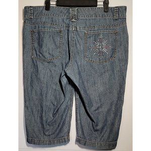 New York And Company Size 14 Denim Shorts 100% Cotton Starburst Rhinestones on Back Pocket. Excellent Pre-owned Condition Please See Photos For Measurements And Condition Thanks For Looking