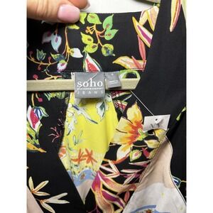 Elevate your wardrobe with this New York & Company Soho Floral Flowy Sleeveless Blouse Mini Dress in size small. The stunning multicolor floral pattern and V-neckline add a touch of femininity, while the side zipper and slit accents provide functionality and style. Perfect for any occasion, this blouse can be dressed up or down and is a must-have for any fashion-forward woman. The sleeveless design and lightweight fabric ensure comfort and breathability, making it a great option for warmer weather. Don't miss out on this versatile and chic addition to your wardrobe.