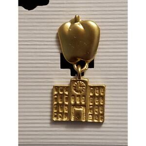 These are nice earrings representing New York City with the shape of a Big Apple on the top and Grand Central Station dangling underneath. They are in gold tone metal and drop almost 2 inches. These are new on the original card.
