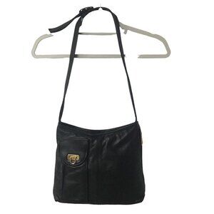 New York Black Leather Shoulder Bag With Sunglasses Compartment