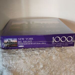 This New factory sealed New York by Night glow in the dark 1000 piece jigsaw puzzle measures 20" x 27" when finished. All offers are welcome.