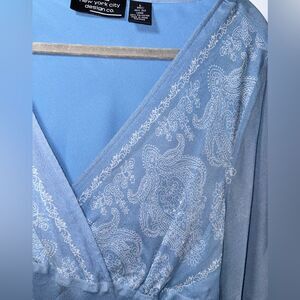 New York City Design Co Blue BOHO Fairy whimsical Silk Tunic Blouse VTG L EUC
