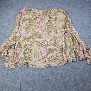 New York City Design Top Womens 4X Leopard Floral Silk 90s Ruffle Whimsical Y2K