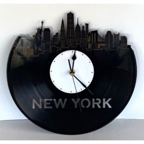 New York City Skyline Silhouette Vinyl Record Wall Clock Laser Cut ~ GREAT GIFT