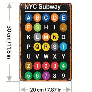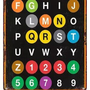Description: This vibrant 8"x12" metal sign features the iconic New York City subway alphabet in the familiar colors that represent each train line. Each letter is color-coded to match the actual subway lines of the NYC transit system, making it not only a stylish piece of decor but also a functional guide. From the red for the 1, 2, and 3 trains to the yellow for the N, Q, and R lines, the alphabet helps subway enthusiasts easily distinguish between routes by their color and corresponding train numbers. Plus, enjoy a free bonus current MTA NYC train map to complete your subway-themed collection!