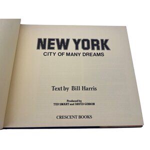 Coffee-table book New York: City of Many Dreams by Bill Harris (text), featuring photography by Robert Van Der Hilst. First English edition, ISBN 0-517-405474, published 1983 by Crescent Books. Large format (approximately 12.5″ × 11″), richly illustrated with color and full-page photos of New York City. A beautiful pictorial tribute to the city, ideal for collectors or city photography lovers.