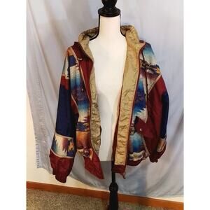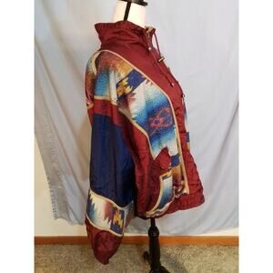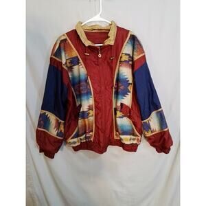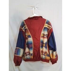 New York Classics . Red and blue jacket with southwestern pattern accents, two snapped front pockets. Elastic waistband.
