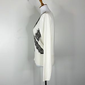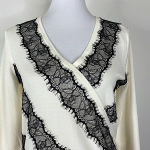New York & Company 7th Ave Design Studio Cream Sweater w/ Black lace accents Sz. Medium