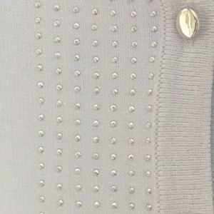 EUC New York & Company baby blue cardigan with silver buttons and dots. Silver buttons have scratches - worn minimally. Smoke-free home. Thank you for checking out my closet!