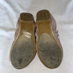 This womens pink glitter pair of New York & Co. ballet slippers has some wear &