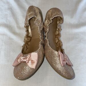 New York & Co. Ballet Slippers Womens Size 9 Medium Pink Glitter Bow Toe Slip On