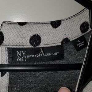 New York & Co. Black Polka Dot Print-Faux Leather Sleeves Shift Dress-Sz Large