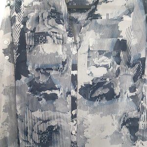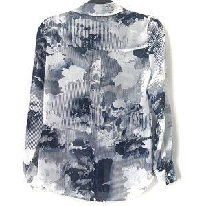 New York & Co Women Blue/Gray/Multi Button Down Long Sleeve Collar Shirt, Size XS