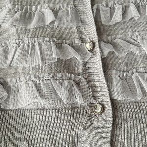 New York & Co Collection Ruffle Front Jeweled Button Cardigan - Light Gray - M