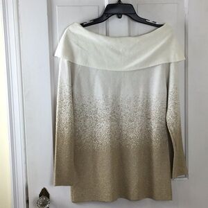 New York & Co. Off Shoulder Sweater Boatneck Cream & Gold