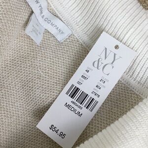 New York & Co. Cream & Gold Holiday Sweater Sz M NWT
