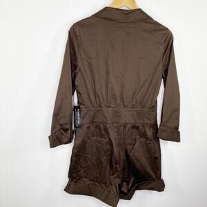 New York & Co Gabrielle Union Brown Zip Front Romper Women's Size Small S NWT
