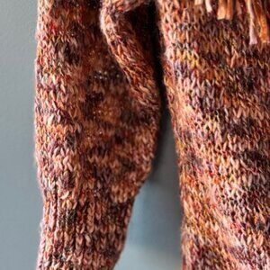 New York & Co L Brown Orange Shawl Collar Fringe Ribbed Fall Knit Boho Heritage