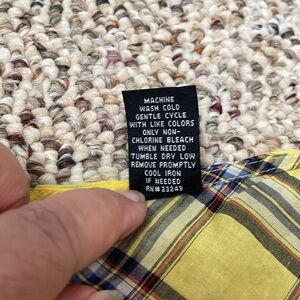 This vibrant tank top from New York & Company features a bold yellow and blue plaid pattern with an asymmetrical design. The fitted style and lightweight fabric make it perfect for casual summer outings, with a ruched V-neckline