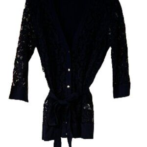 New York & Co Navy Lace Cardigan with Tie Waist - Medium