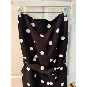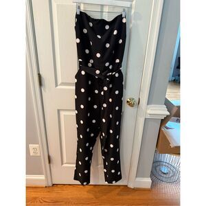 New York & Co. Navy Polka Dot Strapless Tie Belted Jumpsuit Sz XL NWT
