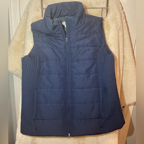 Navy blue, zip opening, front slip pockets, Puffer vest.