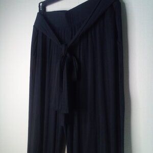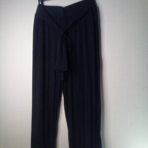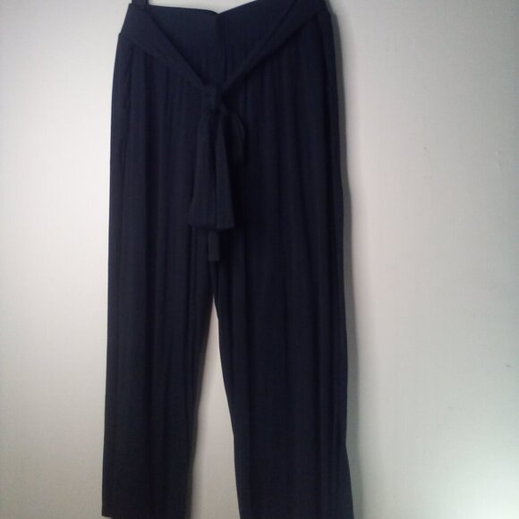 New York & Co Pants Women XL Cropped Wide Leg Attached Belt Stretch Black