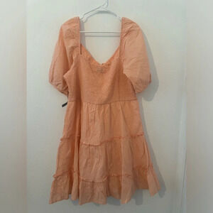 New York & Co Peach Tiered Puff Sleeve Short Dress Textured Cotton NWT XXL