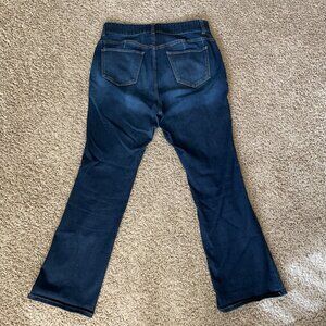 Sculpting No Gap Barely Bootcut Jeans, designed with the hourglass shape in mind! Hidden elastic minimizes gapping in back, complemented by a slimming Power Mesh panel & sculpting fabric. A subtle bootcut silhouette in deep blue is super flattering. Great condition.