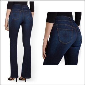 New York & Company Mya Curvy Sculpting Bootcut Jeans - Dark Blue Wash, Size 14 Petite