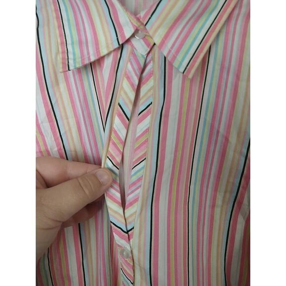 New York & Co Pink Stripes Collared Keyhole Button 3/4 Button Sleeve Blouse L*