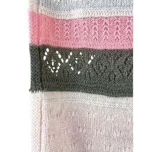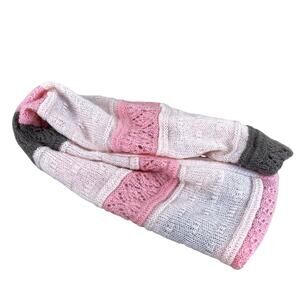 Pretty color block knit infinity scarf, each block using a different knit pattern. Measures 60" round x 11"