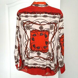 Elegant silky blouse of washable 100% Polyester. Long sleeves. Excellent condition.